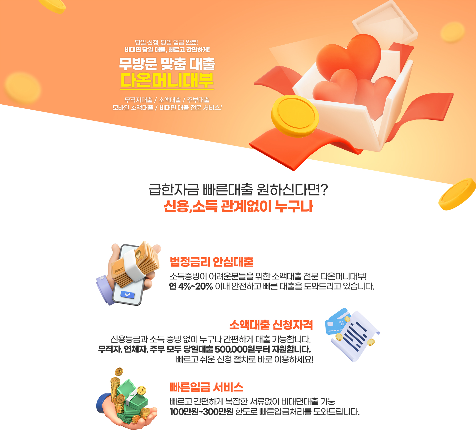 무방문대출 다온머니대부 당일 안전하고 빠르고 간편하게!